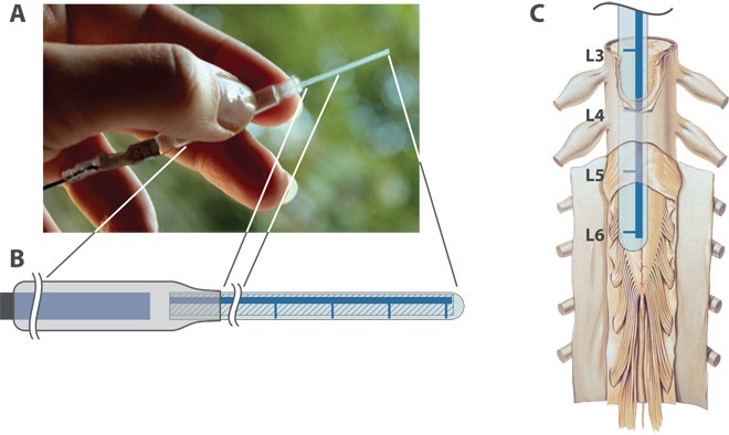 محققان سوئدی این دستگاه را بر موش های آزمایشگاهی مورد بررسی قرار داده اند. در این مطالعه، انتقال دهنده های عصبی انتشار درد( γ-aminobutyric acid (GABA به چهار نقطه مختلف ارسال شدند. اما به دلیل کاشت و وجود این دستگاه در بدن، سیگنال های درد به مغز منتقل نشده و با عوارض جانبی حداقلی نیز مواجه شدند.