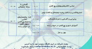 مدرس: دکتر میر شهرام صفری فوق دکترای علوم اعصاب از ریکن ژاپن عضو هیئت مدیره انجمن علوم اعصاب ایران عضو هیئت علمی مرکز تحقیقات اعصاب دانشگاه علوم پزشکی شهید بهشتی مدیر آزمایشگاه دینامیک مدارهای عصبی قشر مغز شروع کلاسها: ۲۶ آذر ماه ۱۳۹۷ آخرین مهلت ثبت نام: ۲۴ آذر ماه …