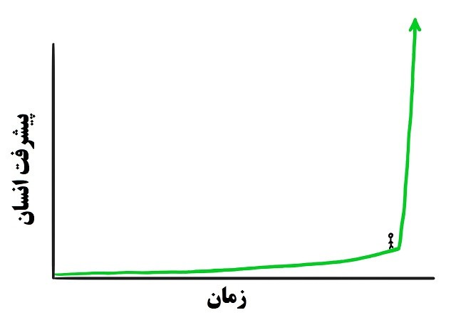 سرعت پیشرفت علم و فناوری در طول تاریخ کند بوده است. شخصی که در سال ۱۵۰۰ میلادی زندگی می‌کرده با شخصی که در سال ۱۷۵۰ میلادی زندگی می‌کرده، تفاوت چندانی ندارد. در طول این دروان سیر رشد علمی آهسته بوده که اغلب در علم فیزیک این دوران مشهود است. اما اگر این شخصی از سال ۱۷۵۰ میلادی را با یک انسان سال ۲۰۱۵ مقایسه کنیم، این تفاوت در تمام شاخه‌های علم بسیار مشهود است.