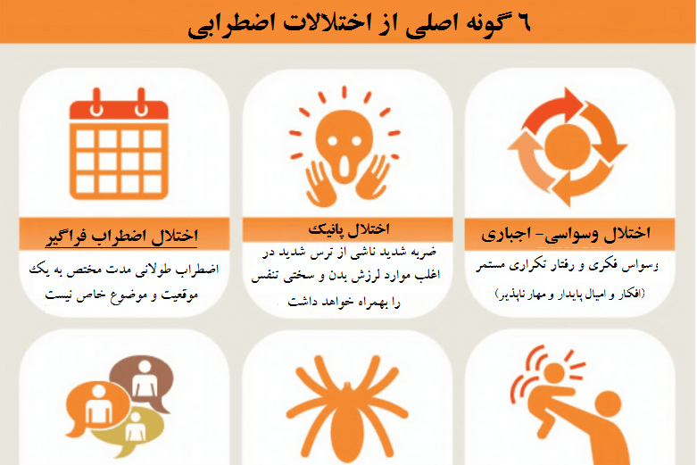به گزارش نوروسافاری به نقل از مدیکال دیلی، اختلالات اضطرابی در همه اشکال و فرمها وجود دارند و واکنشهای متفاوتی را در افراد مختلف بر می انگیزند. روانشناسان اختلالات اضطرابی را در ۶ گروه از یکدیگر متمایز کرده اند:  اختلال اضطراب فراگیر (GAD)، اختلال پانیک، اختلال وسواسی- اجباری (OCD)، اختلال اضطراب اجتماعی، ترس‌ مرضی‌ (فوبیا) واختلال استرس پس از سانحه (PTSD). با وجود اینکه اضطراب می تواند ناشی از چیزها و موقعیتهای متفاوت باشد،  اکثر کسانی که این اختلال را تجربه کرده اند، تنگی نفس، تپش قلب، عرق کردن، بی خوابی و یک نگرانی دائمی را تجربه می کنند.