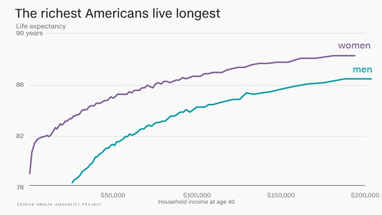 به گزارش نوروسافاری به نقل از خبرآنلاین، مردانی که در قشر یک درصد ثروتمند جامعه هستند، پیش بینی می شود که تا ۸۷.۳ سال عمر کنند که طول عمری ۱۵ سال بیشتر از افراد یک درصد فقیر جامعه است.