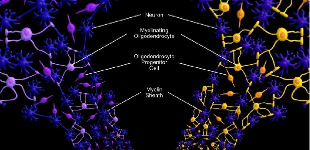 در یک آزمایش نهایی، محققان دریافتند که صدمات به میلین در قشر میانی جلوپیشانی باعث تغییر رفتار اجتماعی در موش ها می شود، اما با شکل گیری میلین جدید، رفتار به حالت عادی بازمی گردد.