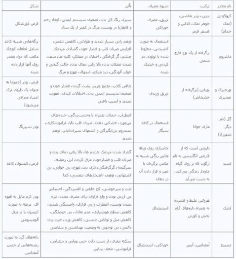 در جدول فوق می‌توانید اطلاعاتی را درباره چند نمونه از معروف‌ترین روانگردان‌های جدید و نوظهور ببینید تا شاید به آگاهی شما در این‌رابطه کمک کند.